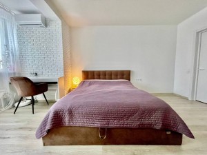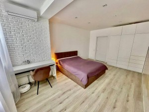 Большая светлая спальня с двуспальной кроватью, вместительный шкаф, кондиционер. Кухня студийно объединена с гостиной, красивая глянцевая белая встроенная кухня, индукционная плита, дорогая техника, холодильник, удобный угловой мягкий диван, обеденная зона, рабочая зона для ноутбука, ванная, стиральная машина- автомат, гардеробная,,,