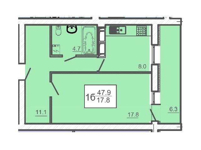 Жила площа: 18 кв.м