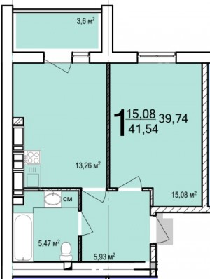 Жила площа: 15 кв.м