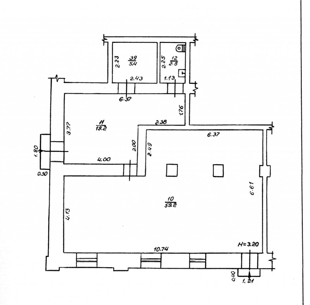 - высота помещения Н= 3,20 м.;