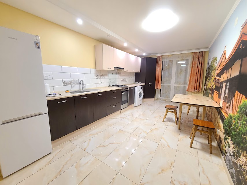 Здам в оренду переплановану 2 кімнатну квартиру в кухню-студію з окремою спальнею в Центрі, в р-ні вул. Європейська, 66 в новому будинку, ремонт 2019 р., повний комплект меблів та побутової…