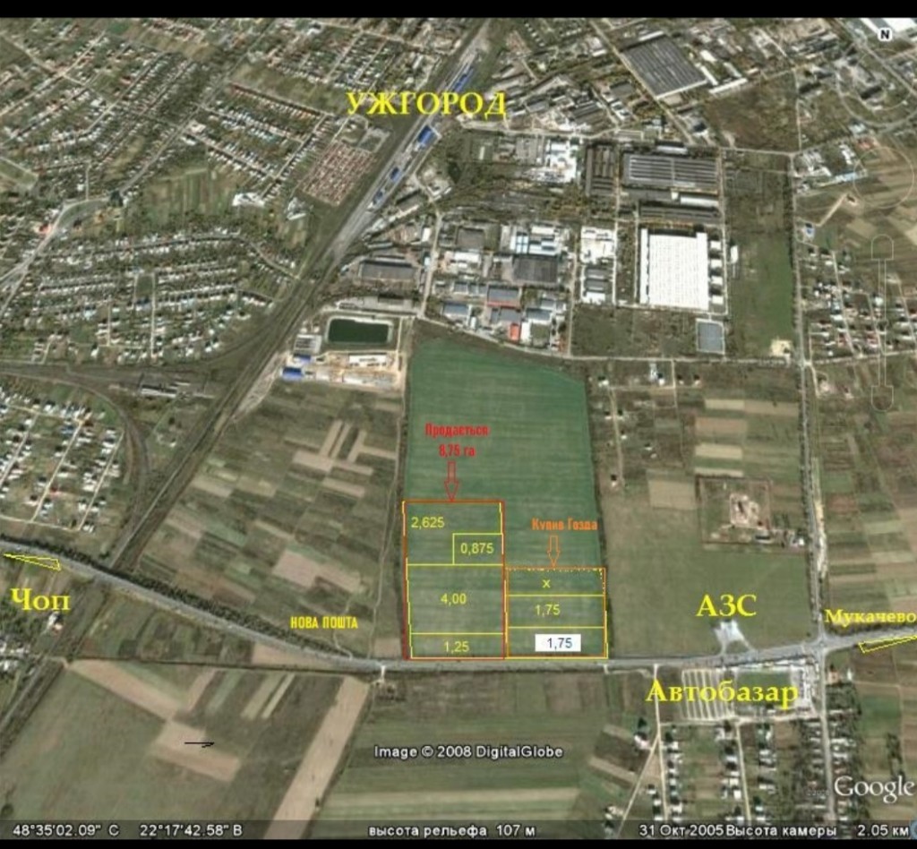 Продаж земельної ділянки комерційного призначення, можливе використання : логістичного центру, , мотель, автосалон, промислового підприємства або котеджного містечка. ділянка розташована на південній околиці міста. Ужгород , фрагмент окружної дороги між с.Розівка та с.Кінчеш.