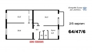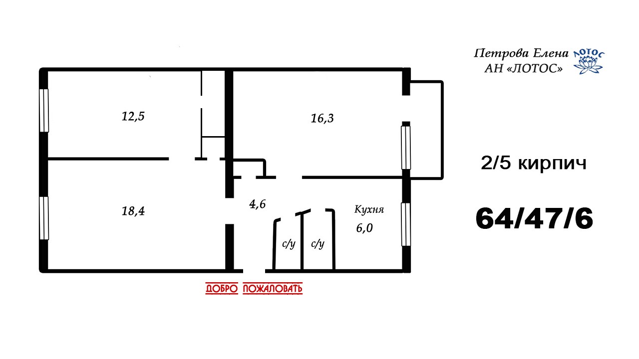 Квартира расположена в середине дома, на 2 этаже. Необыкновенно большая жилая площадь—47 метров! Это намного больше, чем в похожей квартире любого девятиэтажного дома!