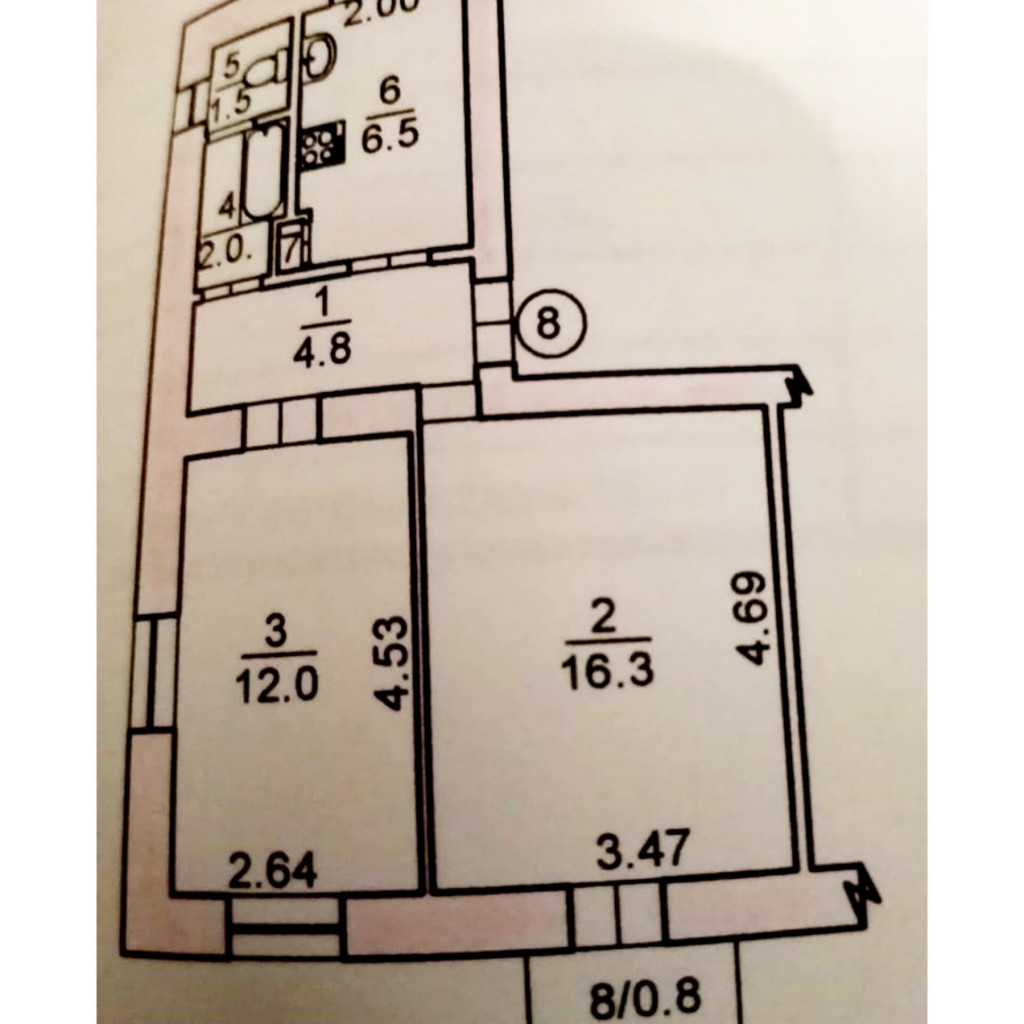 1 кімн., площа 26/16/6, поверх 2/2