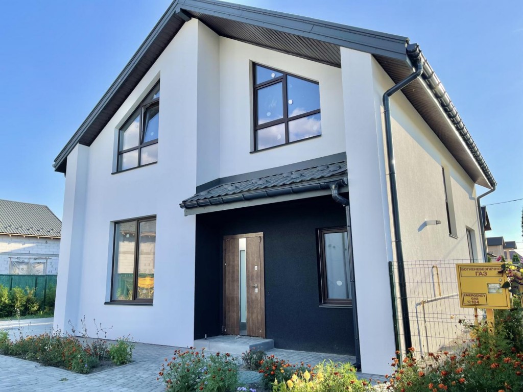 Будувався будинок з якісних матеріалів, Застосовані технології енергозбереження, утеплення стін 120 мм, вікна REHAU євро70 з посиленим профілем, утеплений цоколь, утеплена покрівля 200 мм. Панорамні вікна та висока стеля 3,2м створюють відчуття комфорту та свободи. Зручні бетонні сходи, перекриття монолітне, залізобетонне 180 мм. Якісні вхідні двері виробництва RODOS.