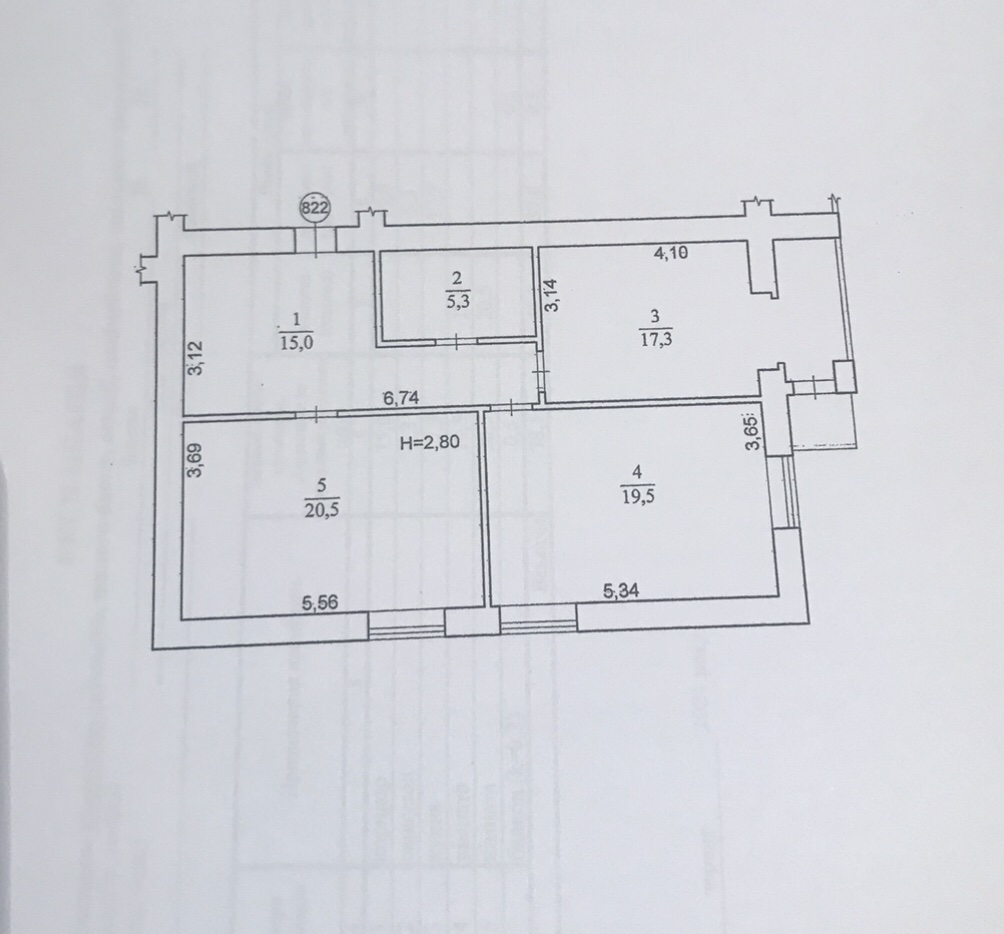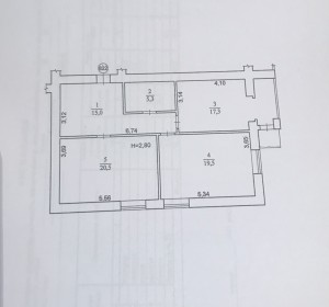 Загальна площа 78,1м2; житлова 40,0м2; кухня 17,3м2; кімнати 19,5м2 та 20,5м2; коридор 15м2