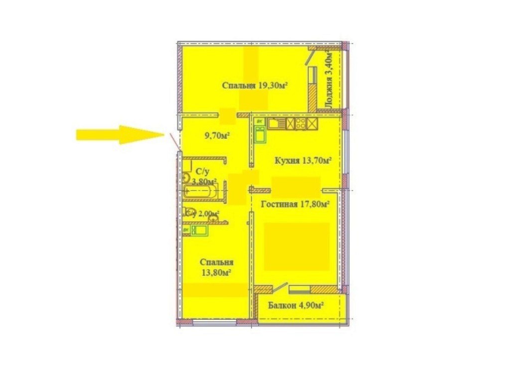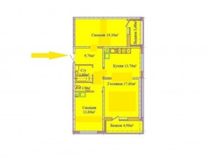 3 кімн., площа 89/66/14, поверх 2/3