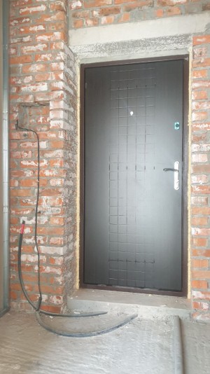Вхідні двері броньовані з МДФ накладкою, з двома замками.