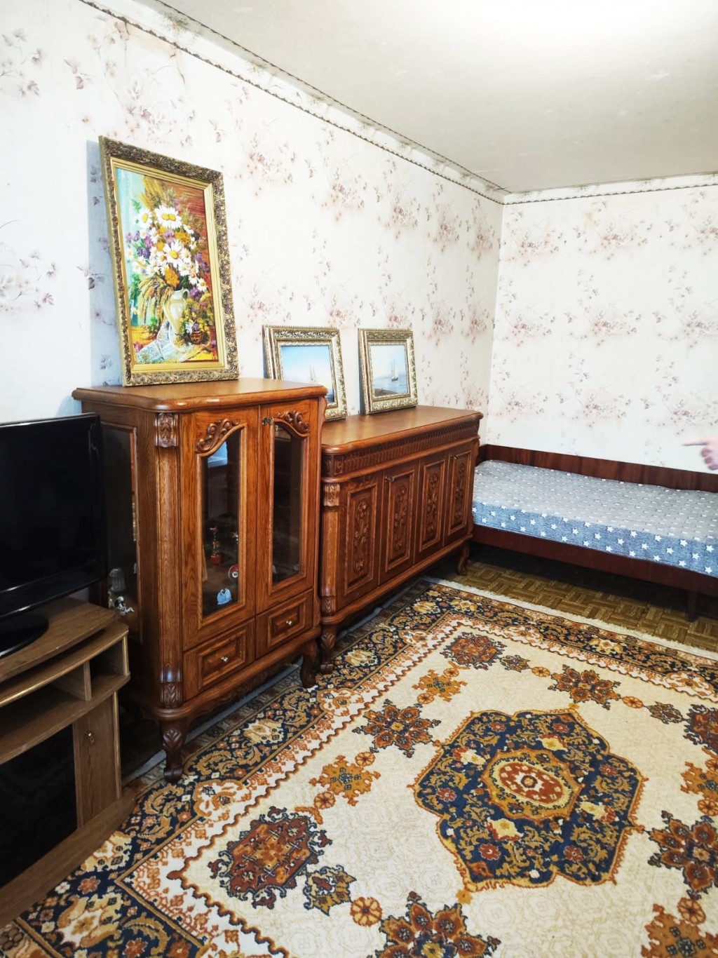 ТАКОЖ в квартирі залишається комлект дубових меблів(комод та горка для посуду),напольний годинник.