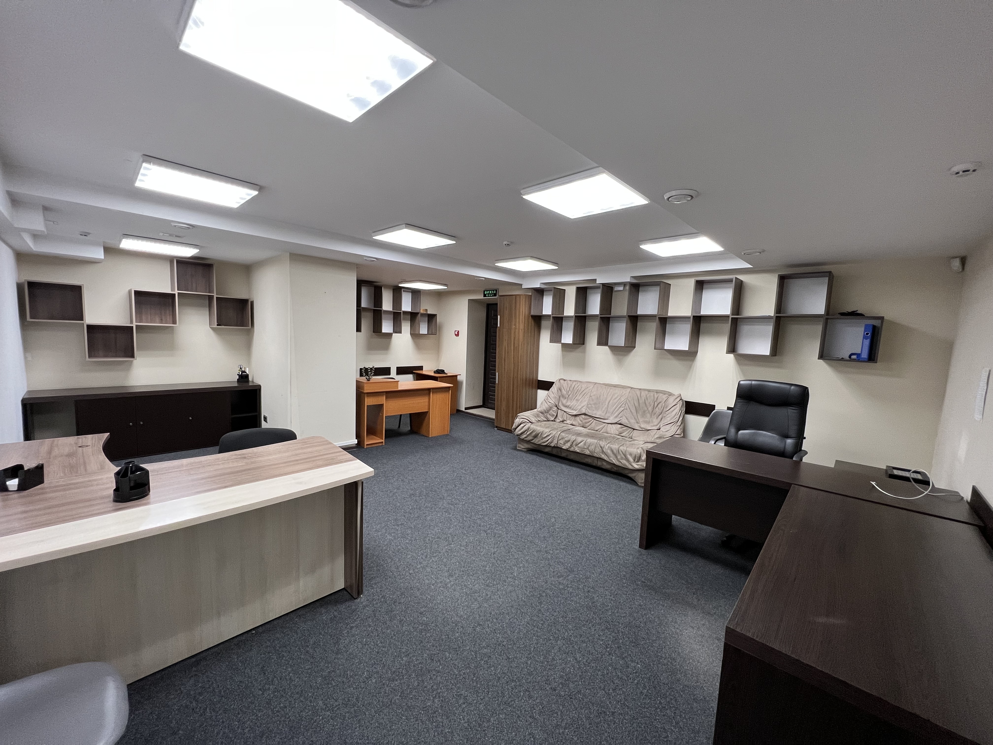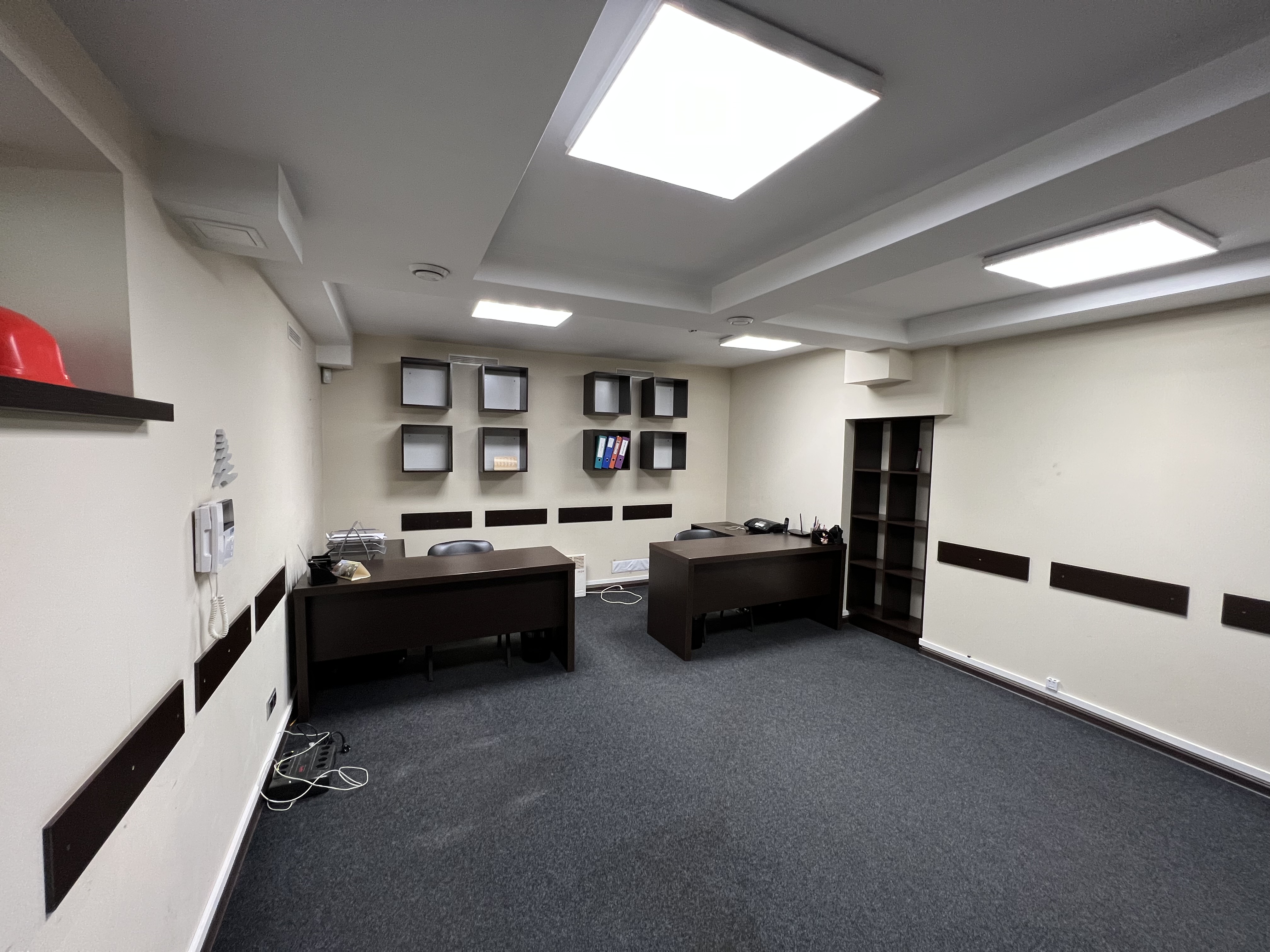 Приміщення складається з п'яти окремих кабінетів, які можуть бути використані під переговорні кімнати або приватні офіси для співробітників. Кожен кабінет є світлим та просторим, з комфортними робочими місцями.