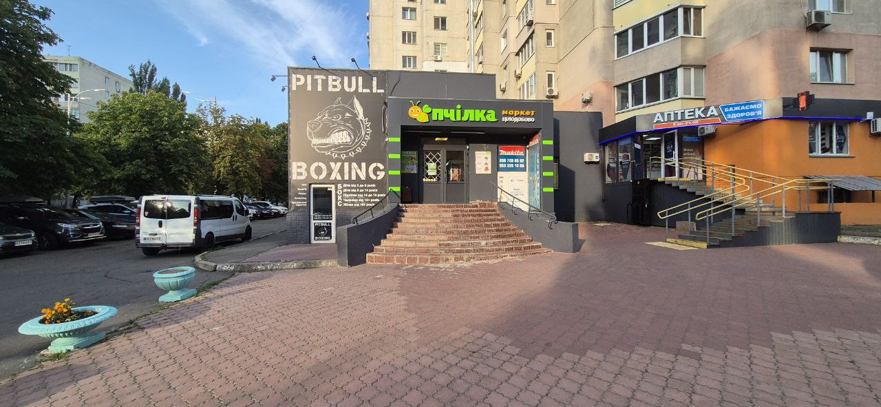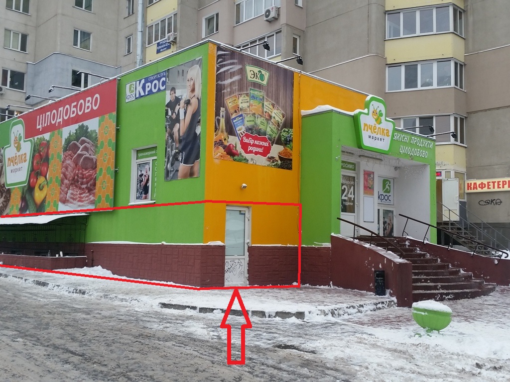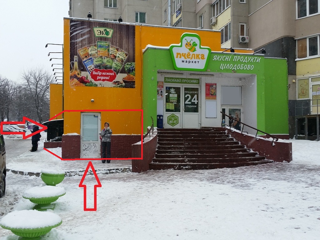 У приміщенні по сусідству цілодобовий супермаркет Бджілка, магазин електроінструментів.