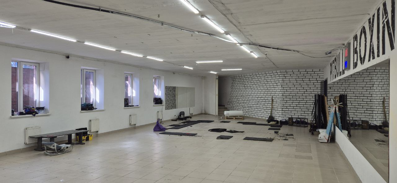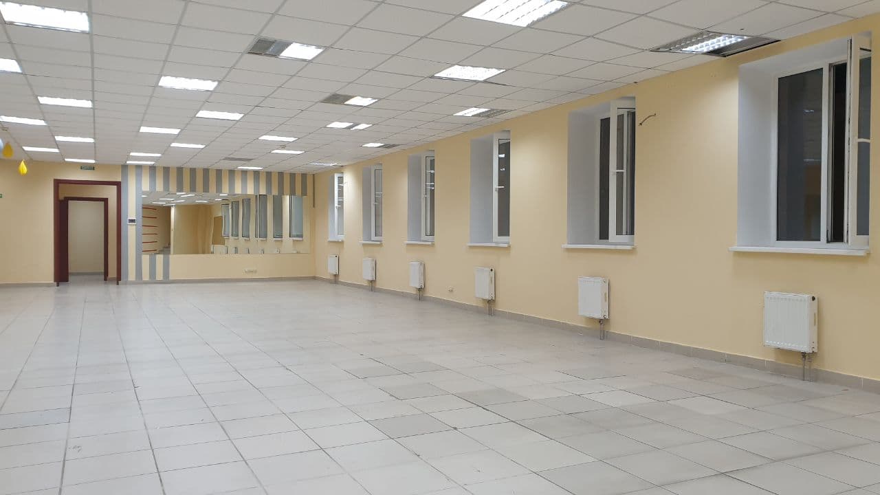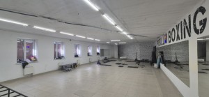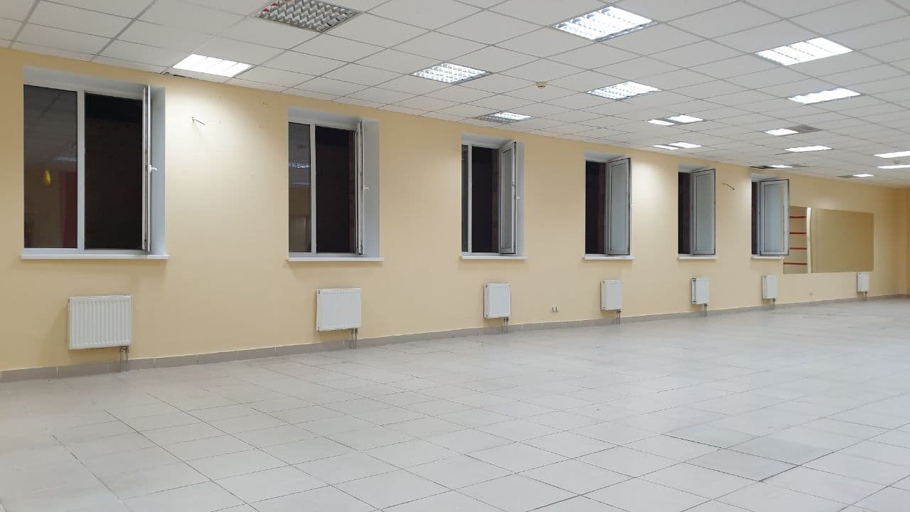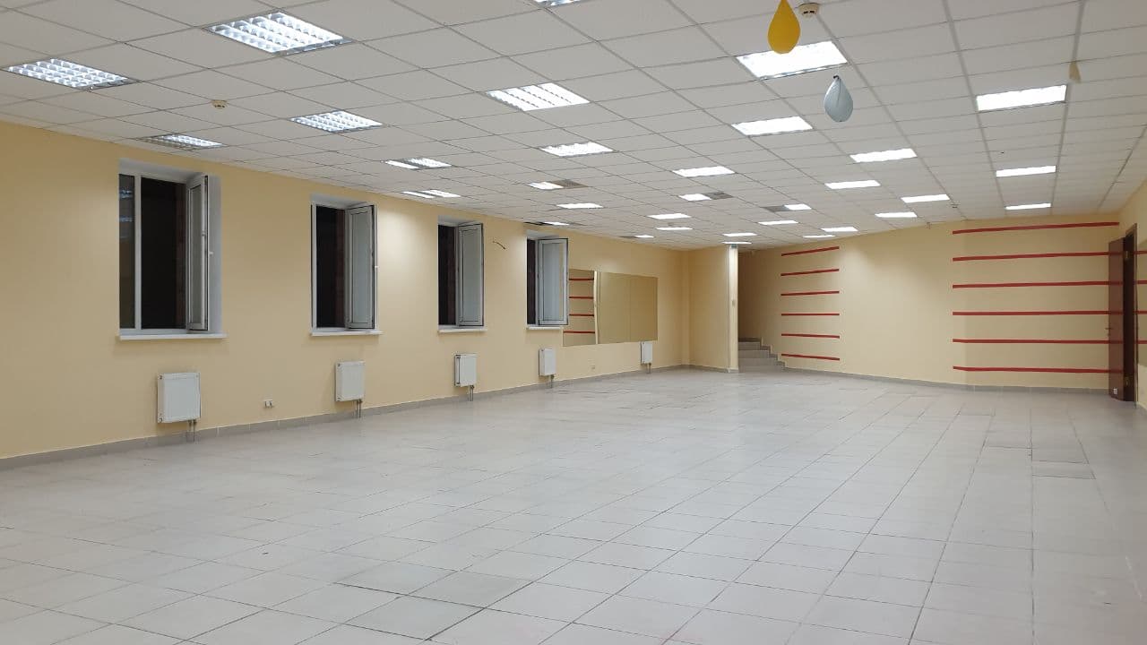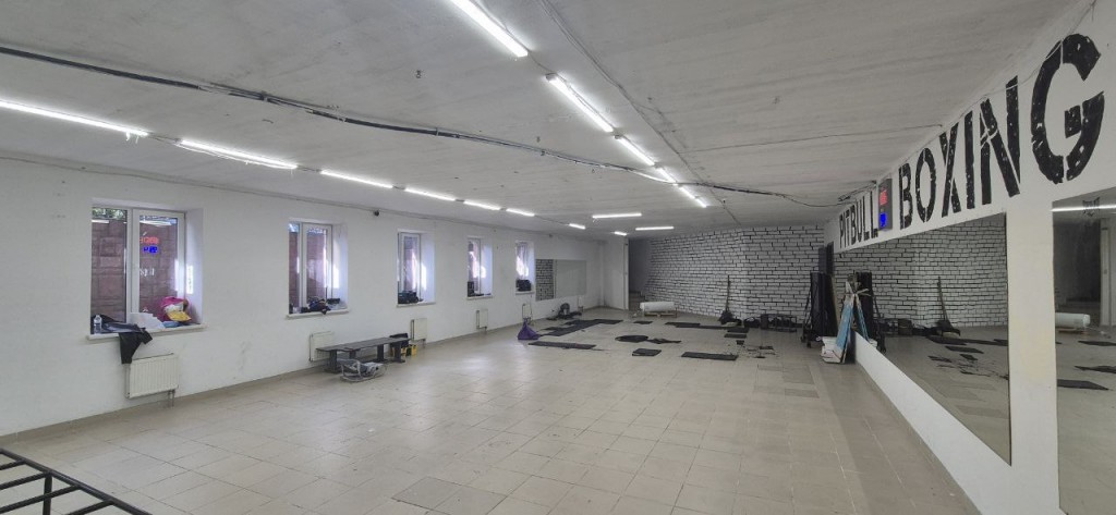 У приміщенні 6 вікон, 2 окремі входи з вулиці, Н=3, 3м, open-space 160м, 2 санвузли, комора-25м (Н-1,5м) всі комунікації, електрика 50кВт, на підлозі плитка, стіни пофарбовані, зроблений косметичний ремонт у 2022 році (діючий зал боксу, раніше секонд-хенд та спортзал).