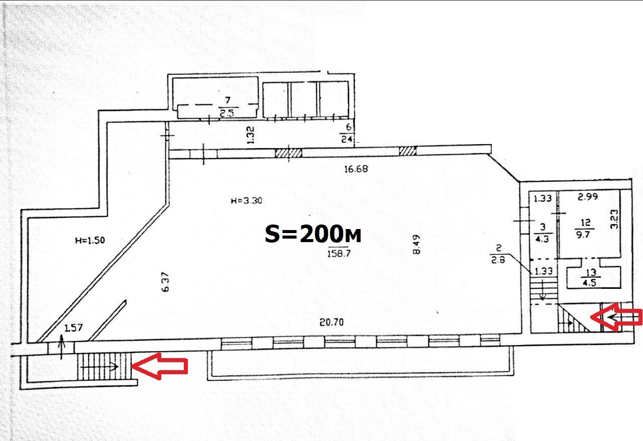 Площа 230м у цоколі, фасадний вхід з вулиці.