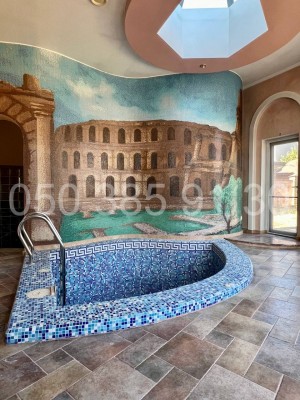 Витончений інтер'єр з використанням високоякісних матеріалів, таких як венеціанська штукатурка, мармур, мозаїка, дерево, додає відчуття розкоші та стилю.